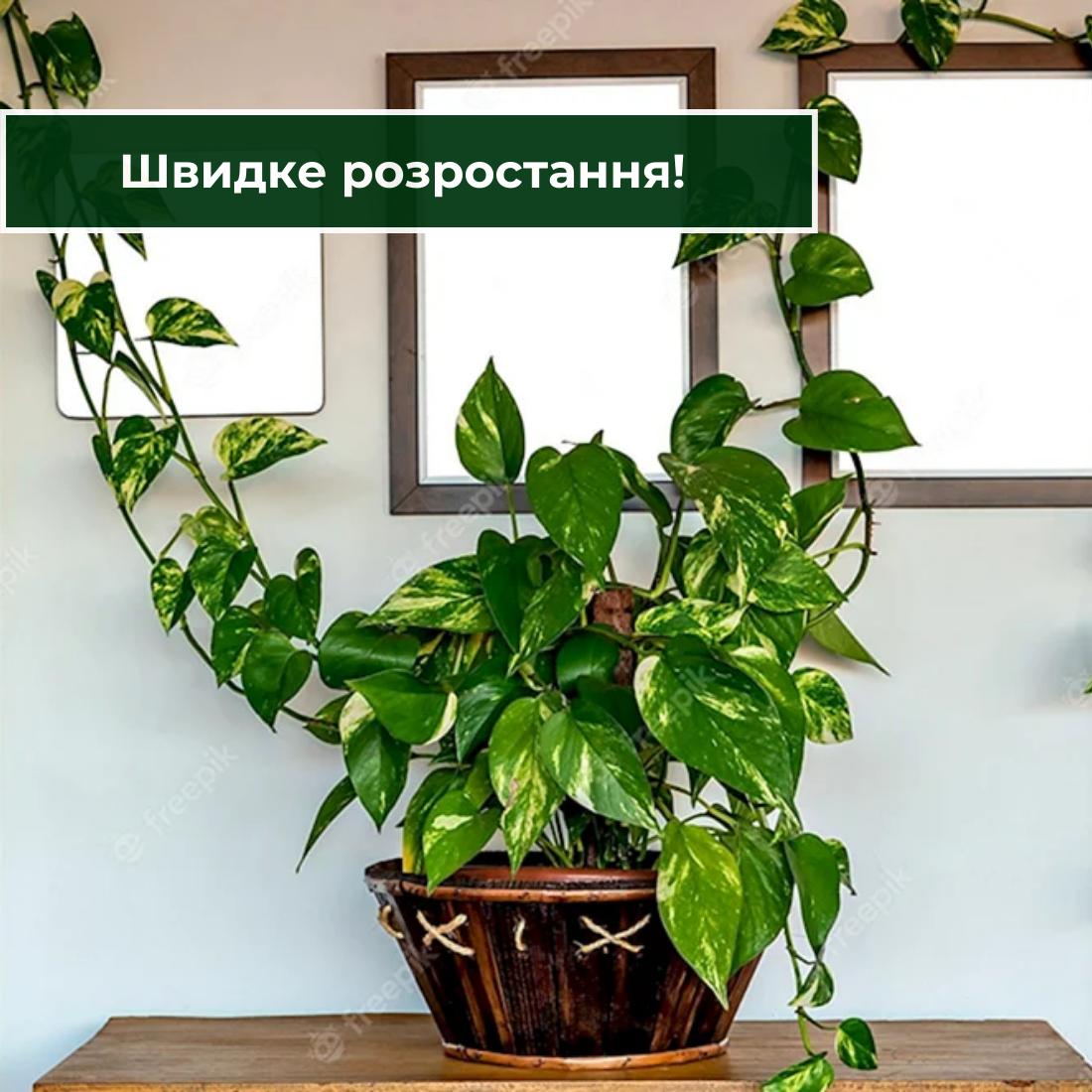 Ліана інтенсивно розростається, формуючи густий зелений покрив. Її можна використовувати як живий декор для стін, балконів або підвісних кашпо, створюючи стильні зелені акценти у вашому інтер’єрі.